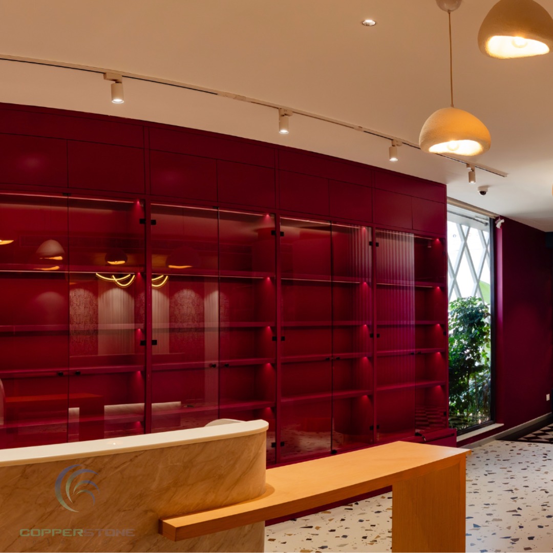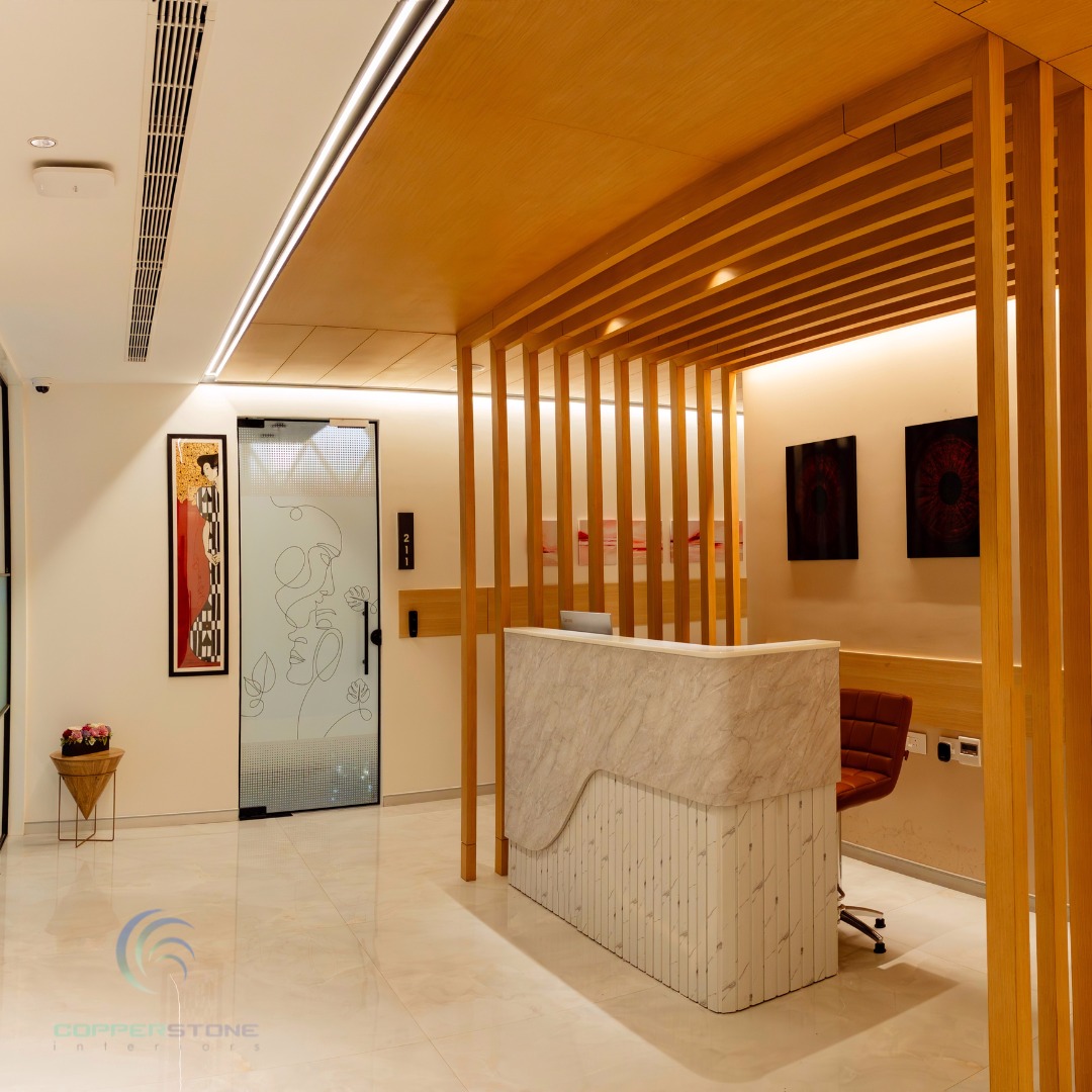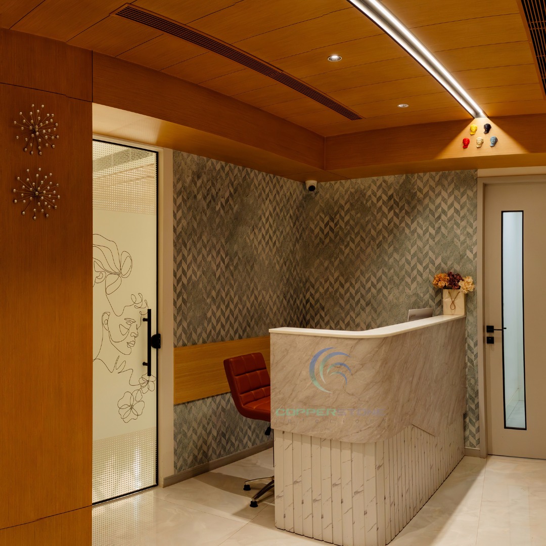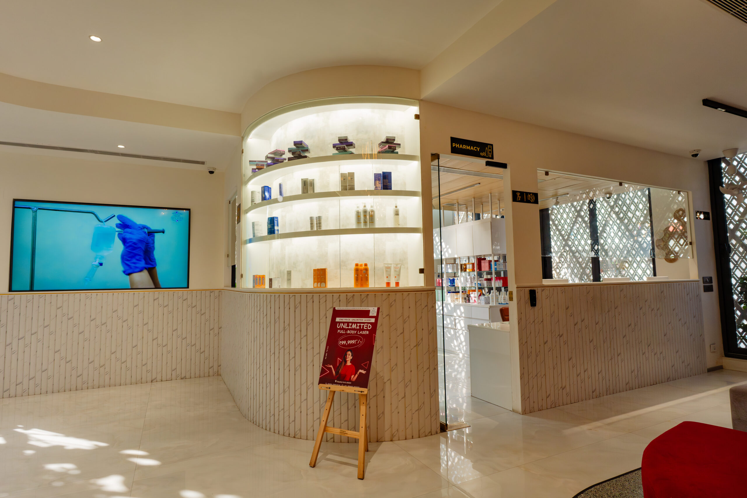 We had the opportunity to implement this milestone project, Skin Secrets, a skincare clinic in Edappally, Kochi, offering high-end dermatology, spa, hair care, and aesthetic treatments. Given its celebrity clientele, the design prioritizes trend-setting aesthetics, bold colors, and immersive interiors, creating an inspiring, lively atmosphere. The clinic’s biophilic architecture integrates natural light, enhancing its vibrant pink-to-white ombre tones, mosaic accents, marble finishes, and checkerboard patterns. The double-height lounge, stunning reception, and high-end pharmacy showcase a blend of elegance and functionality, setting a new standard in contemporary clinic design.