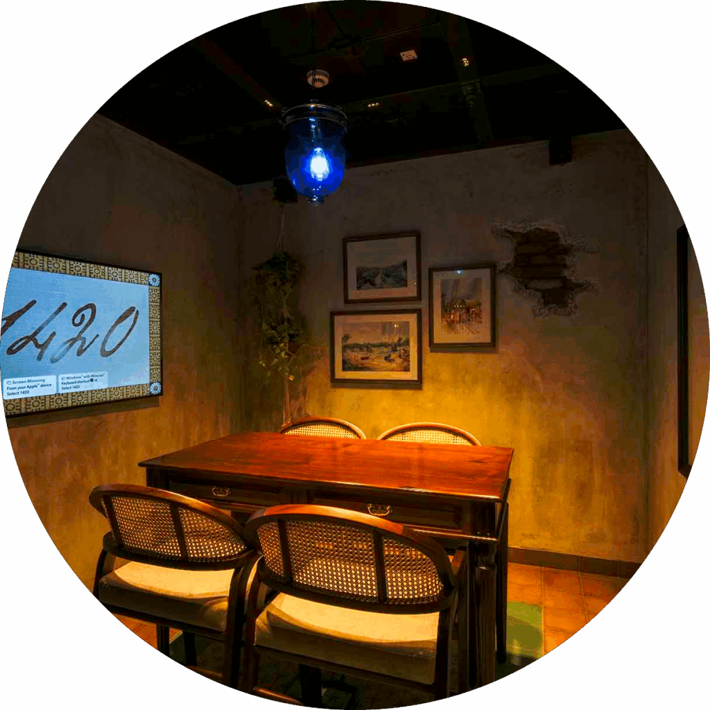 Location : Brigade World Trade Center, Infopark Campus, Kochi. We designed INERG’s corporate office to embody flow, movement, and collaboration. The minimalistic reception features exquisite furniture and a sculptural fin-clad countertop, echoing fluidity. A dynamic baffle ceiling mimics waves, enhancing spatial rhythm. The workstation area integrates biophilic elements, with planter boxes and a hexagonal ceiling resembling a honeycomb—symbolizing unity. Custom in-house furniture fabrication ensures seamless integration. The conference room boasts high-tech support for global meetings. A Kerala-inspired pantry, with tea stall-themed graphics and cargo boat-inspired furniture, adds local character. The cohesive color palette, balancing blues, greens, wood, and white, reinforces harmony and productivity in this meticulously curated workspace.